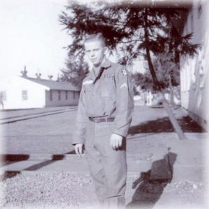 Larry by the Clothes locker at Ft. Lewis
